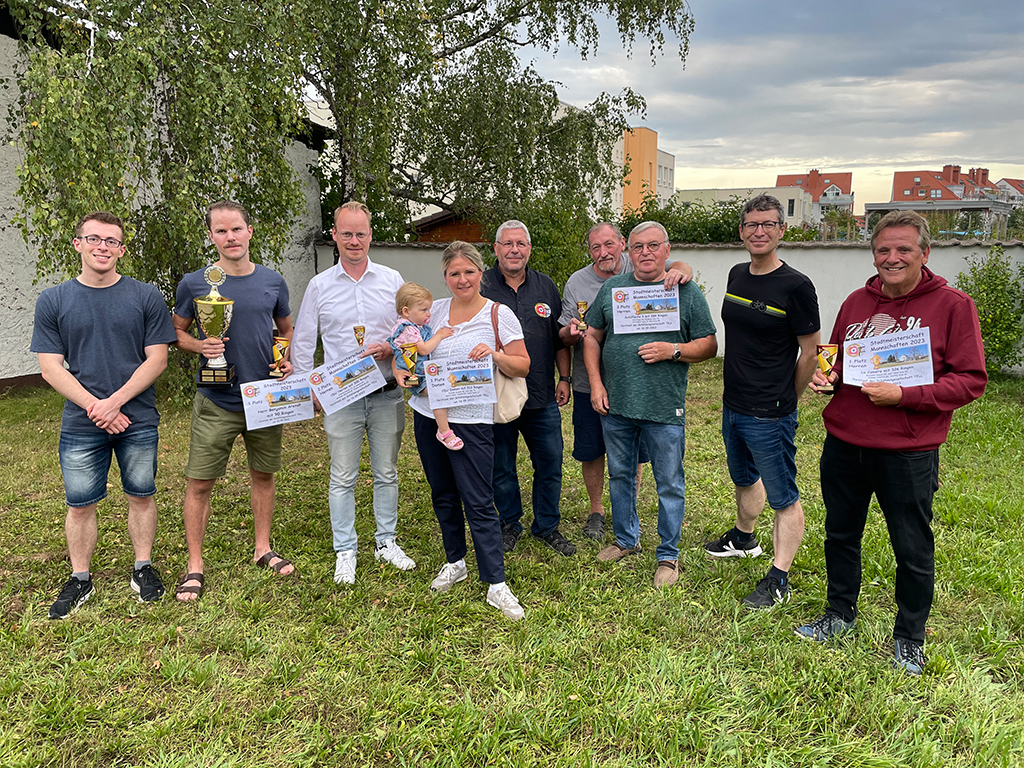 Oliver Weck, Vorsitzender der Tell-Schützen, nahm die Siegerehrung vor. Benjamin Arendt erzielte 90 Ringe und wurde damit Stadtmeister, dicht gefolgt von Karl-Heinz Kunz (2. Platz) und Marion Kiefer-Schmidt (3.Platz), die beide jeweils 89 Ringe erzielten. Ausschlaggebend für die Reihenfolge war daher die Zahl der geschossenen Zehner.